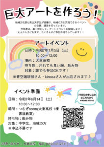 この度、大東高校の地域文化部さんから以下のイベントへの出店依頼があったので参加させていただくことになりました! 『アートイベント〜巨大アートを作ろう!〜』日時 : 7月5日(土)10:00〜12:00場所 : 大東高校 […]