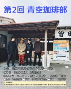 前回のイベントから2年越し、完全自主企画単独イベントを開催します。俺たちは生きてます。帰ってきた青空珈琲部! 『第1回 青空珈琲部』 日時: 11月23日(土)10:00〜16:00 場所: 河北集会所(島根県雲南市大東 […]